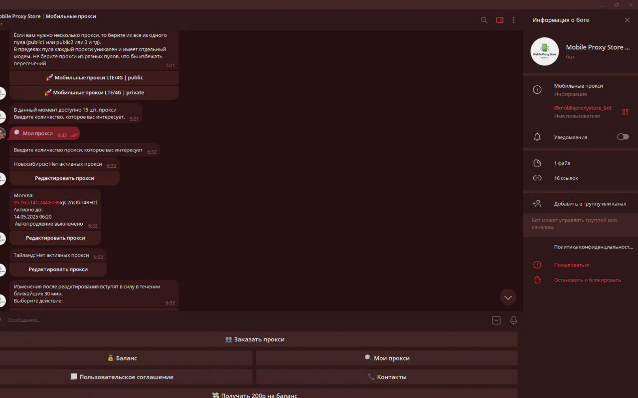 @MobileProxyStore_bot Мобильные прокси Таиланд (Бангкок), РФ (Москва, Новосибирск)