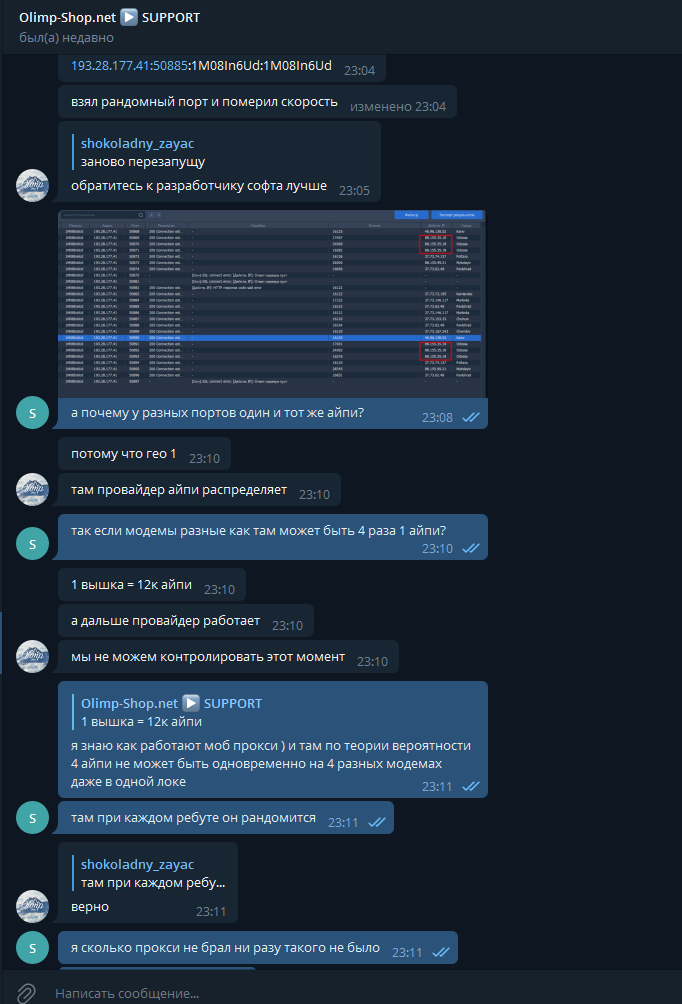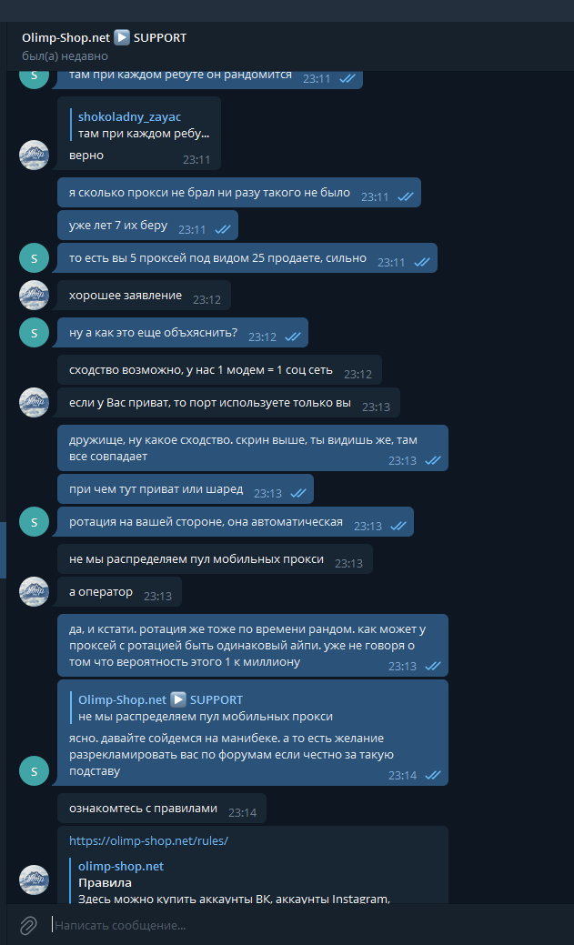 Разговор с Olimp-Shop в TG после этой проблемы: