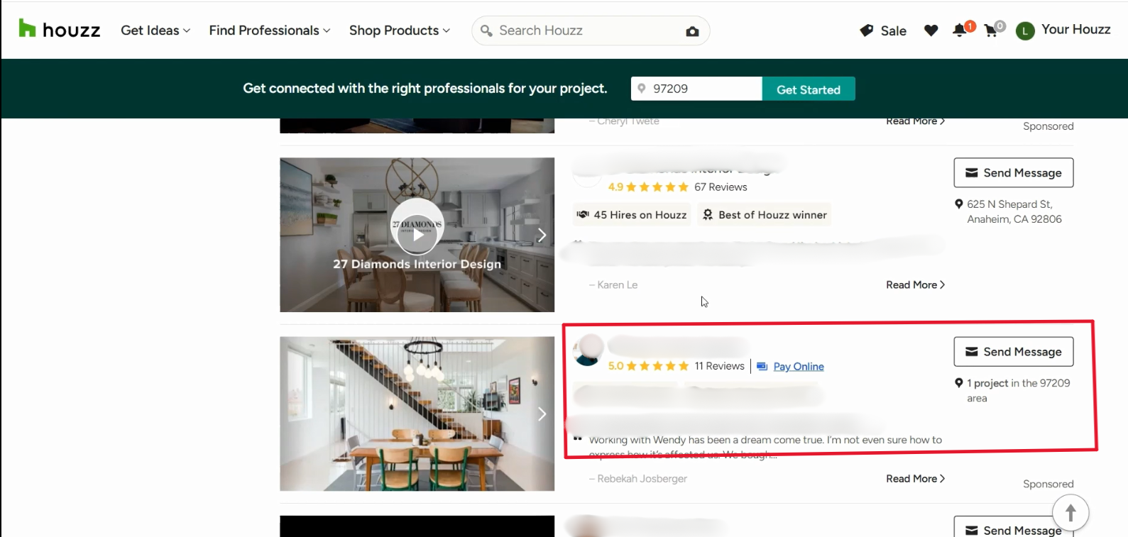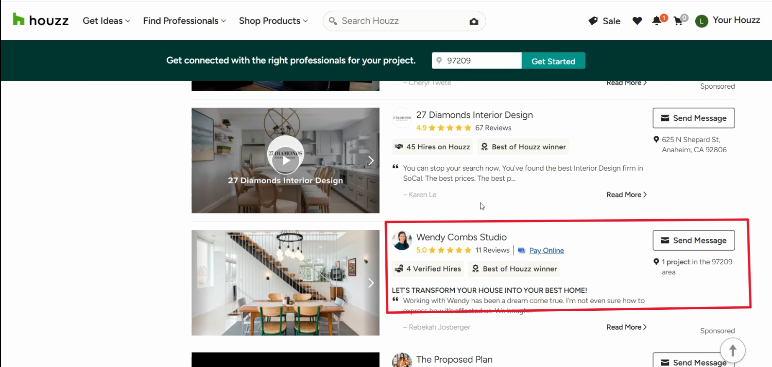 Я обратил внимание на сайт Houzz, который является популярной платформой для дизайнеров интерьеров, архитекторов и других специалистов в области домашнего декора. На этом сайте они размещают свои портфолио и контактные данные, что было именно тем, что мне нужно для продвижения моего магазина.