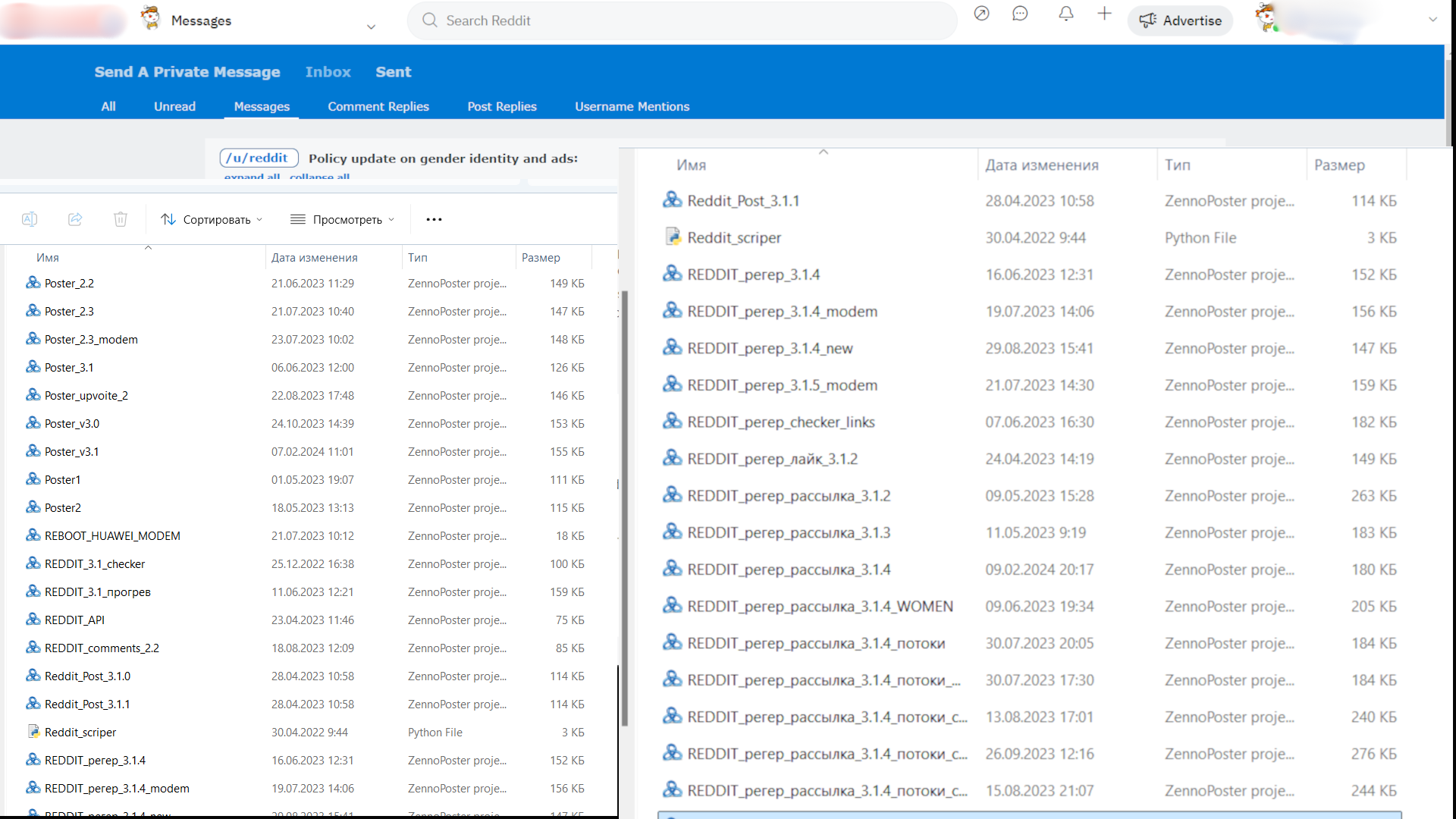 Я специально не убирал даты, чтобы показать, что последний шаблон был написан в феврале этого года. Проблемы с данной платформой возникали регулярно и продолжаются по сей день. Основная сложность — это постоянные блокировки аккаунтов. Несмотря на эффективные методы работы, бан аккаунтов остаётся ключевой преградой, и приходится постоянно искать новые решения и адаптироваться к изменяющимся условиям Reddit.