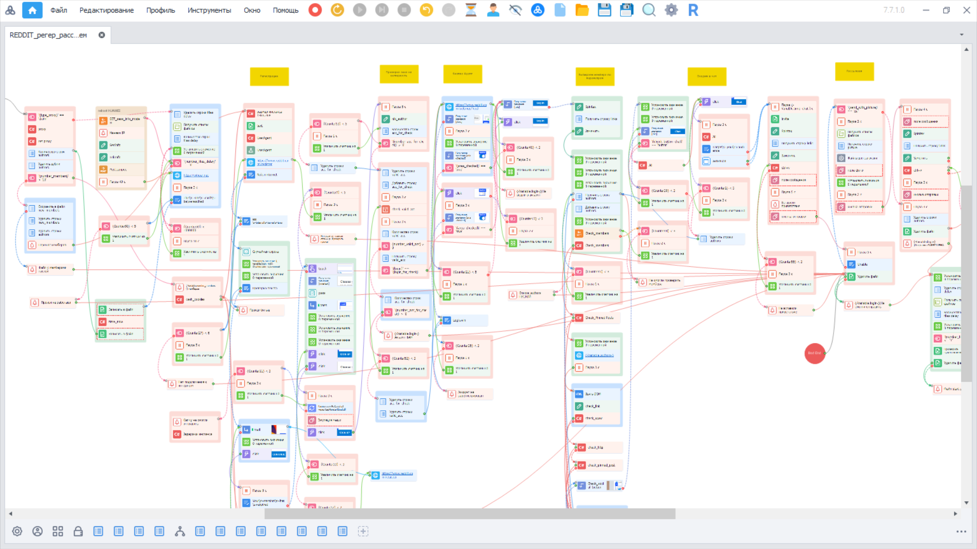 Свежезарегистрированные аккаунты имели довольно высокую выживаемость, около 70%, и успевали отправить до пяти сообщений перед блокировкой. Когда Reddit ужесточил свои алгоритмы по предотвращению спама, мне пришлось разделять процессы на несколько шаблонов и давать новым аккаунтам "отлежку" на 3–7 дней для повышения их шансов на выживание. Однако со временем и эта схема перестала работать стабильно, и пришлось переходить на использование покупных аккаунтов, возраст которых превышал 3 месяца.