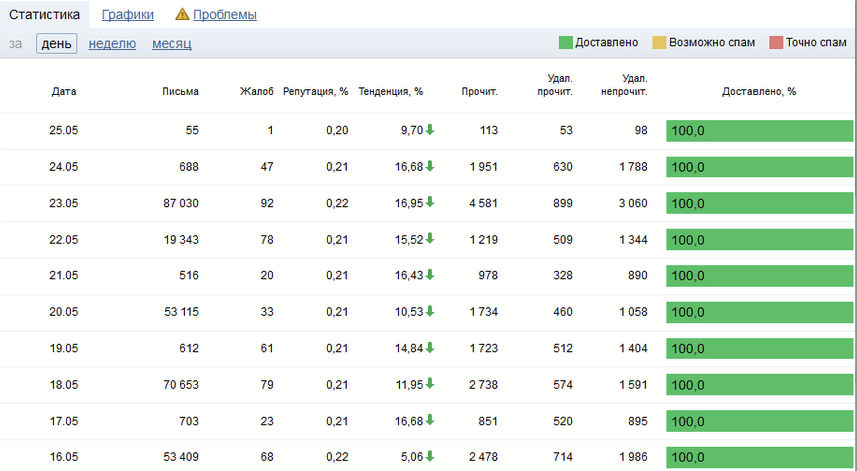 Скорее всего это можно было делать с помощью конфигураций mta, но я не обладал такими навыками. Для этого был сделан бот на Зенопостере, который открывал Postmaster (это сервис для контроля рассылок у майл.ру) и следил за процентом спама на каждом отдельном сервере.