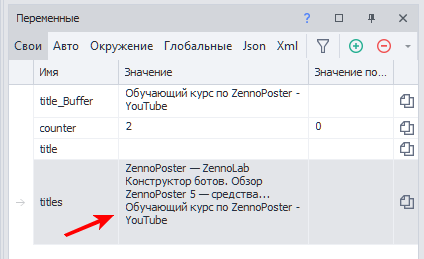 Строк неопределенное кол-во, где-то 2, где-то 10. Делаю так, прохожу список циклом, беру каждую строку по нужному Regexp и кладу в переменную. Думал поставить второй кубик чтобы переменную временную приклеивал к той что нужно, но или что-то не нашел или недопонял. Если бы в кубике "В переменную" была галка "дописать в конец, то было бы ок, но галки такой нет. Как сделать просто и сердито?