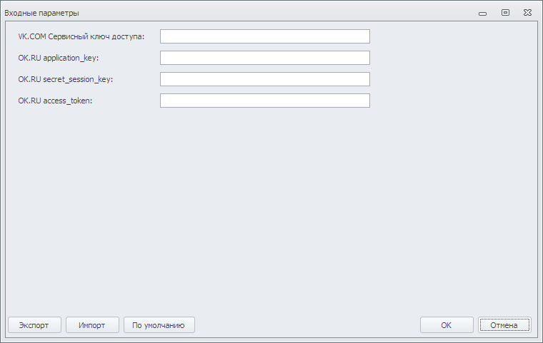1. Открываем шаблон bot_posting_group_ok_api.xmlz и во входные настройки вбиваем нижеприведенные ключи доступа.
