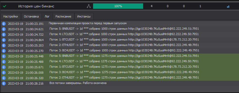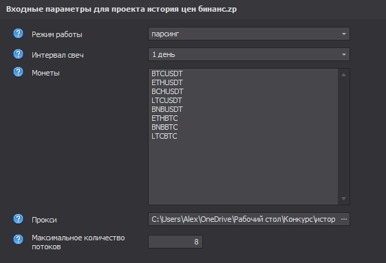 Другие настройки игнорируются этим режимом. В результате работы в корне проекта создается файл symbols.txt - там список всех торговых пар.