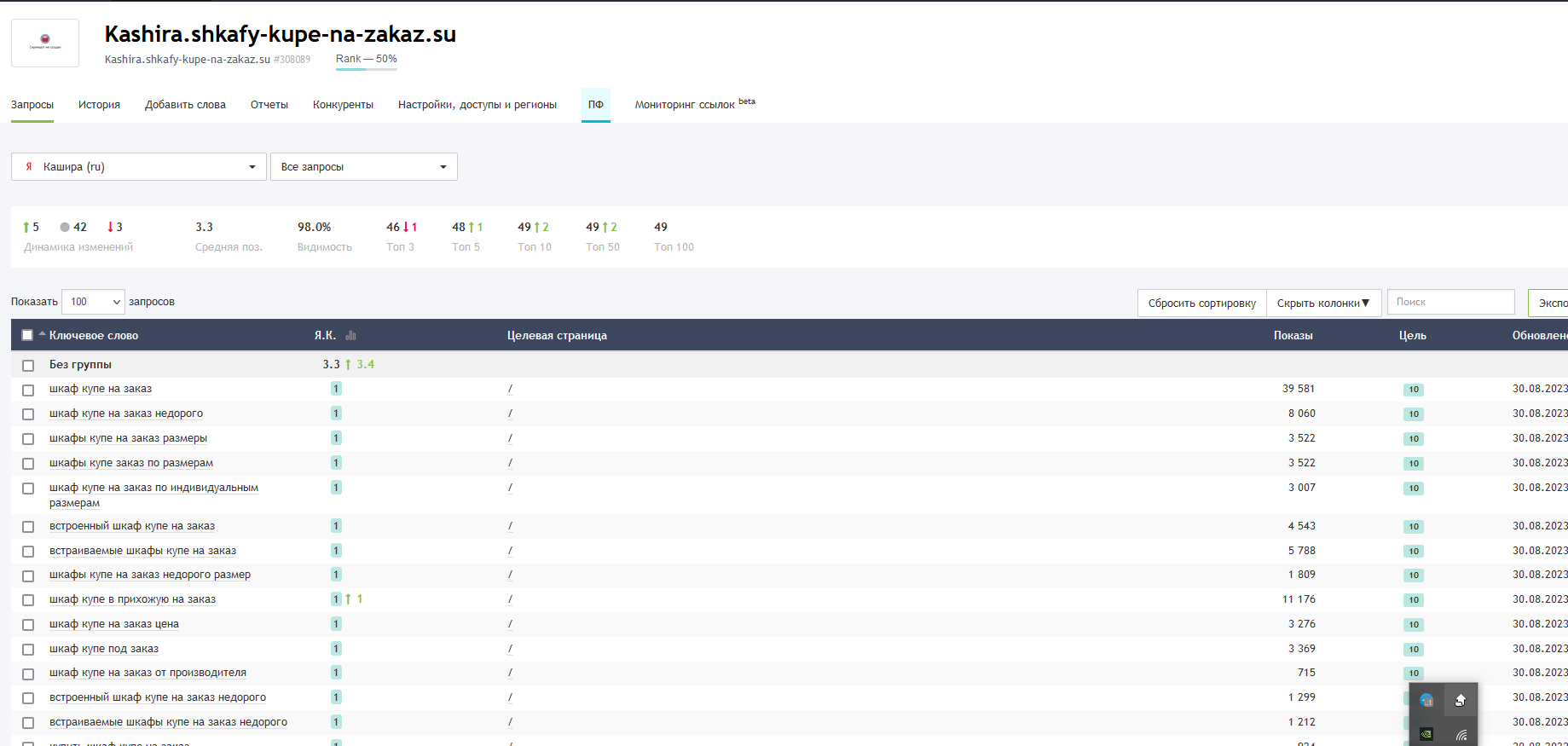 Вот пример как я сеошил по классике (примерно годик) ниша лютая, впереди и агрегаторы и прочее и гео Москва