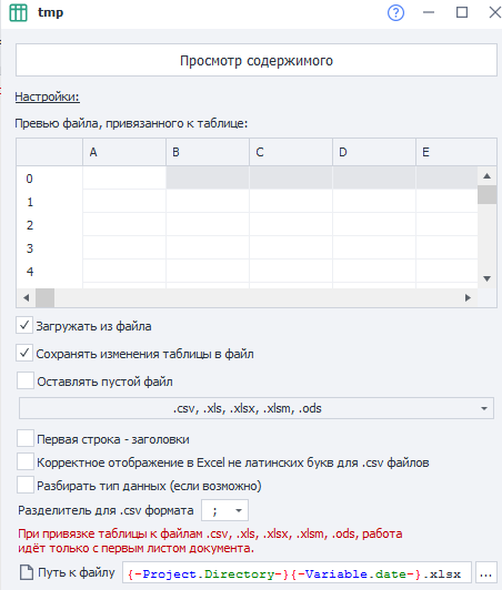 но после нажатия кнопку "Просмотр содержимого" показывает уже готовую таблицу