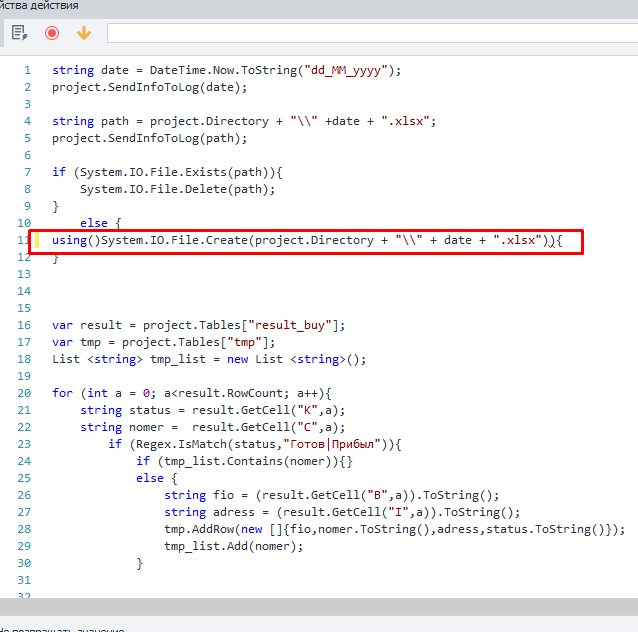 System.IO.File.Create(project.Directory + "\\" + date + ".xlsx");