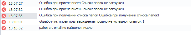 Здравствуйте. Почему то не работает кубик принять почту, а именно выводит ошибку 'работа с email не найдено письмо'.