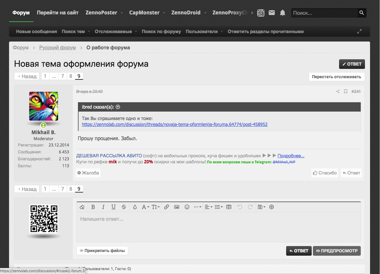 И да я понимаю, что рекламу продавать надо, но поверьте, если она будет внизу темы, ее видимость не изменится. Наоборот, дочитавший залипнет. А вот общее юзабилити форума повысится в разы. Логотип на кой такой огромный ? мы не знаем где мы находимся ? ну замените ссылку "перейти на сайт" на компактный логотип, и будет всем счастье.