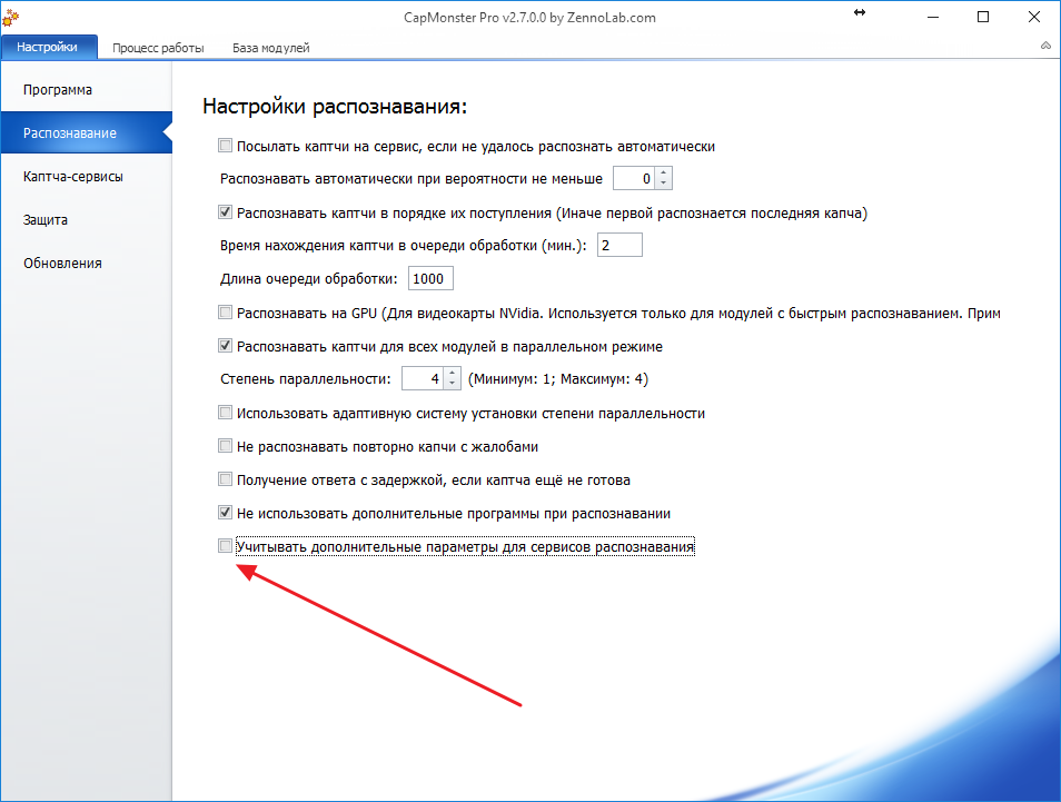 Давно реализовано. Вот эту настройку нужно включить.Реализована ли в эмуляции anti-gate передача дополнительных параметров для разгадывания капчи? Никак не получается прокинуть мин. макс. длину и т.д., а самое главное - параметр CapMonsterModule также игнорируется, например: пост в createTask с параметром CapMonsterModule=ZennoLab.universal .