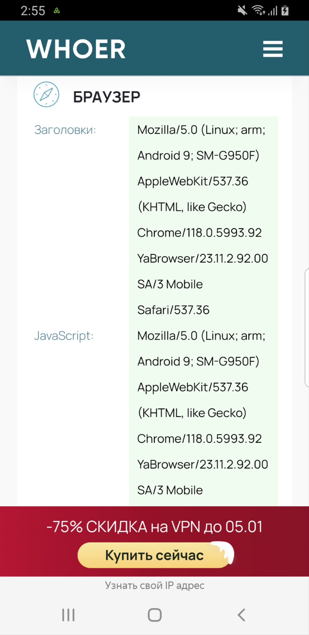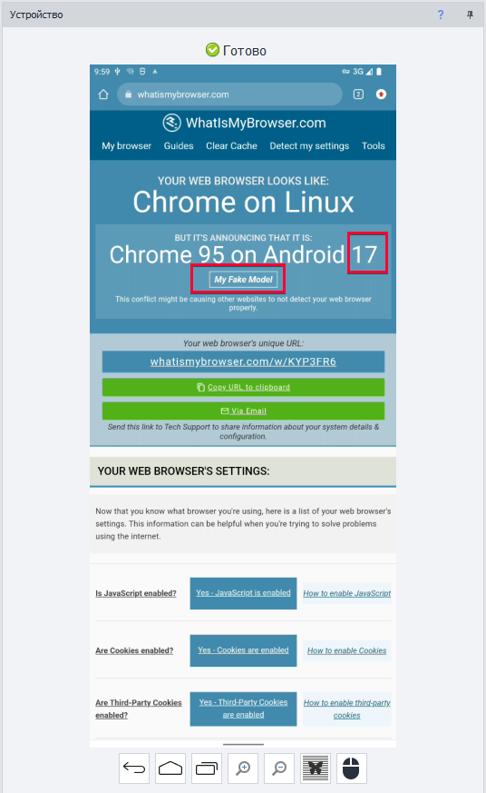 Заметил такую особенность в ябраузере, что само приложение видит "подменённые данные", а вот при переходе по ссылкам светится настоящее устройство