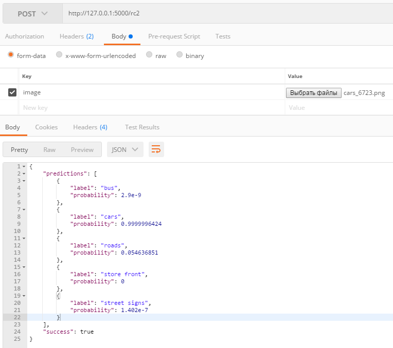 В ответ json и что нейронка видит на ней