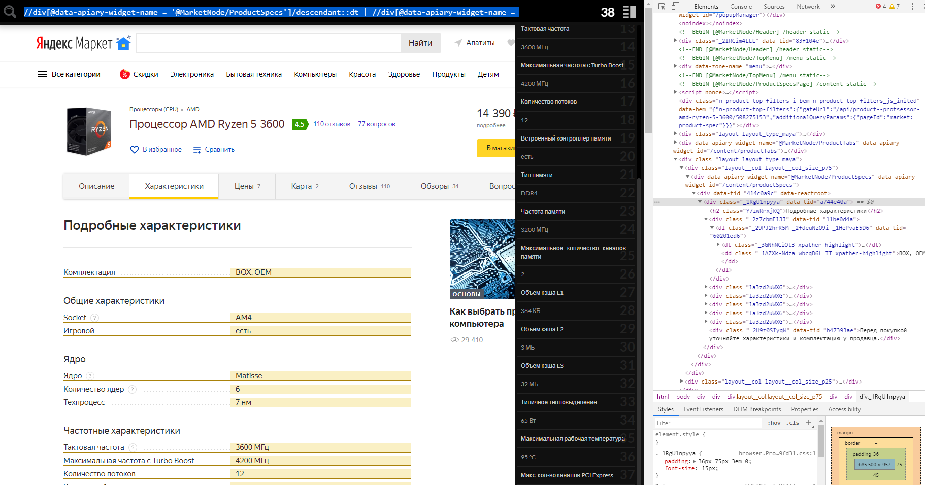 Там сейчас динамические классы, не как было раньше, но это не самое страшное спарсить можно, но нужно каждую инфу отдельно выпаршивать, весь список не получится сразу, либо как-то поделить.Подскажите пожалуйста как правильно составить запрос и сделать c# сниппет, сохраняющий результат в список, чтобы получить все характеристика товара, на примере: https://market.yandex.ru/product--protsessor-amd-ryzen-5-3600/508275153/spec?track=tabs