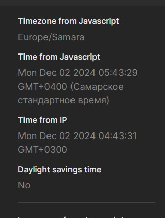 короче я долго ломал голову чего меня вечно детектят по часовому поясу и локации, (pixelscan). оказалось у вас там у апи часовой пояс не правильный. в самаре +4 если что. как так то?