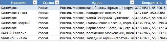 Сейчас в столбце "Координаты" отображается в одной ячейке сначала долгота, затем, через запятую широта. Чтобы можно было удобно использовать координаты, практически во всех сервисах очерёдность противоположная.