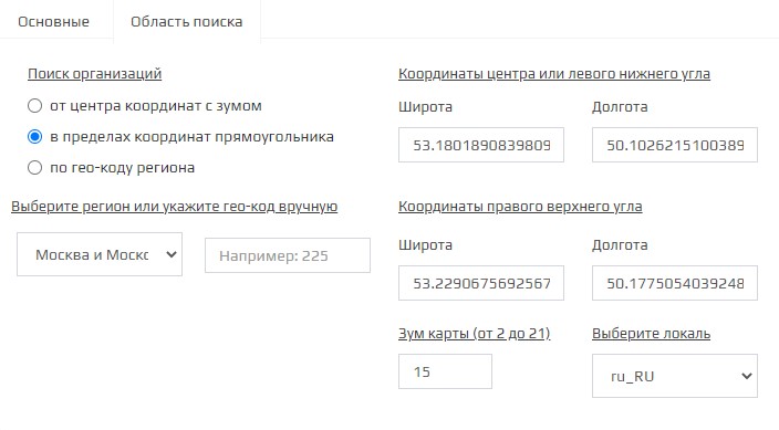 - Выберите регион или укажите гео-код вручную (список гео-кодов, для более точного поиска по региону, можно скачать здесь)