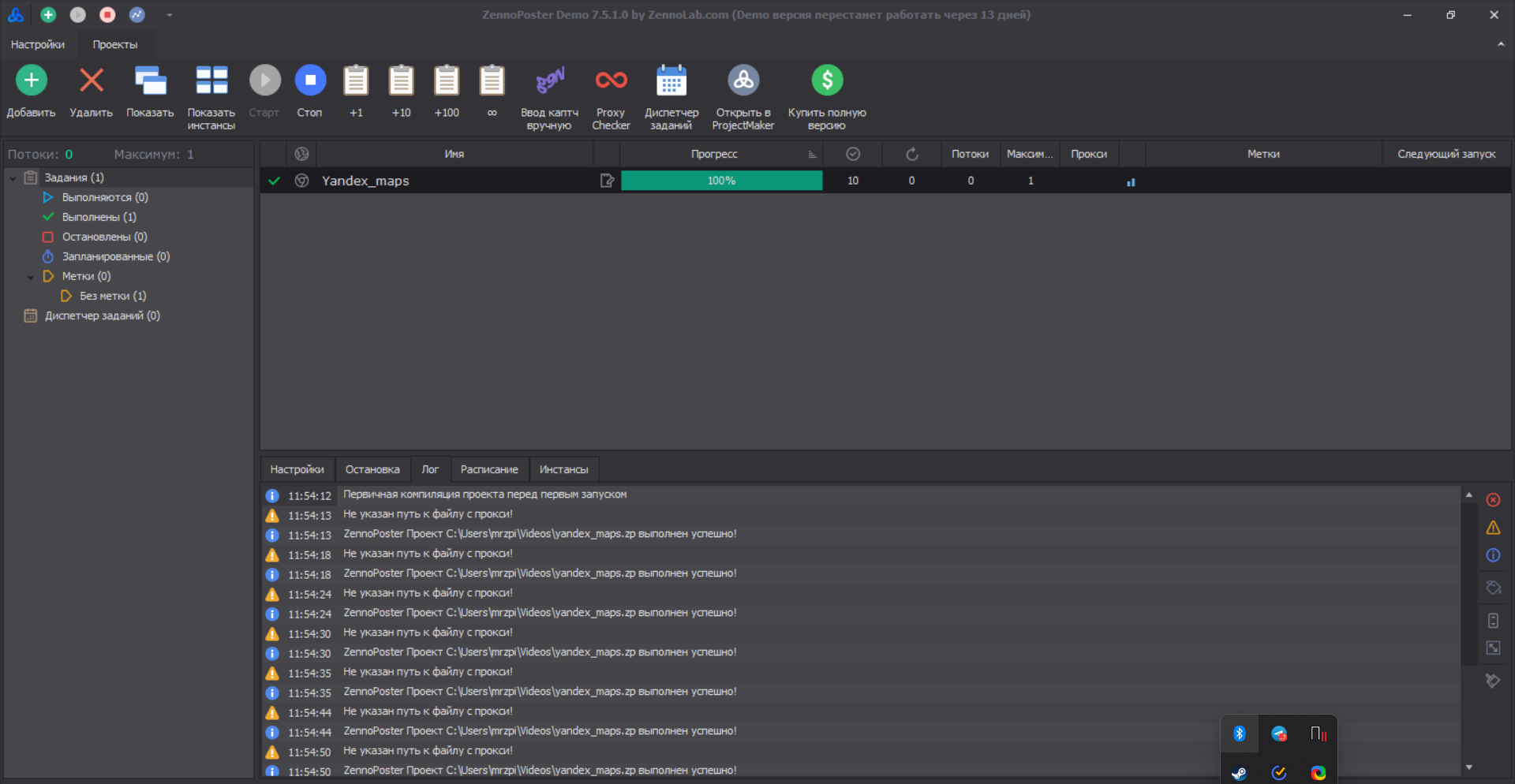 - Укажите путь к файлу с прокси (формат: protocol://login:password@ip:port, справка по формату прокси)