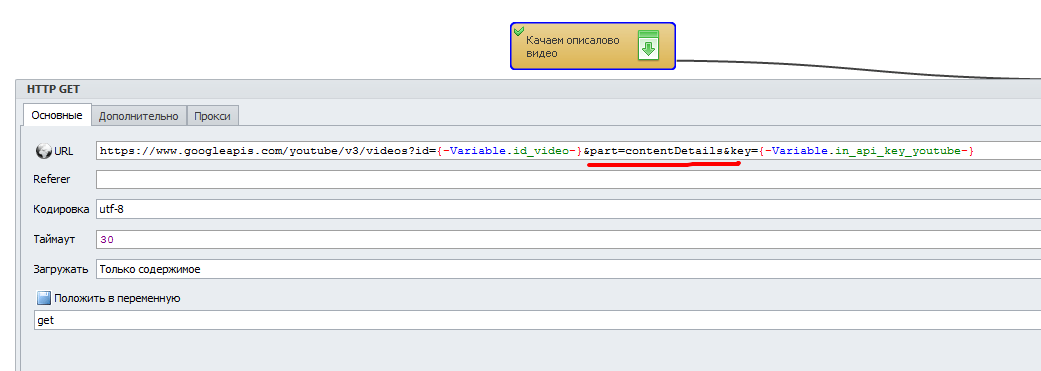 string video = ZennoPoster.HttpGet(url,  "",  "utf-8",  InterfacesLibrary.Enums.Http.ResponceType.BodyOnly, 30000,  "",  project.Profile.UserAgent,  true, 5, new[] {""}  );