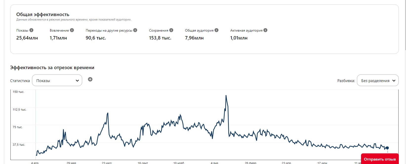 Моя цель на 2025 год — достичь 1 000 000 показов в месяц. Это амбициозная задача, но при условии правильной работы и адаптации к новым условиям, я уверен, что смогу её достичь.