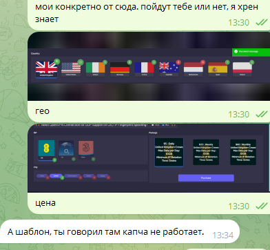 Я должен покупать везде прокси пока не найду те которые у тебя будут работать? После того как уже стало понятно, что шаблон ты не сделаешь. Я отправил тебе предоплату 150$, потом ты сказал, что сделал шаблон, я отправил ещё 150, ты отправил мне не рабочий шаблон, верни мне эти 150$ и я куплю тебе прокси с того сайта который ты скинул, а когда дашь мне рабочий шаблон я их тебе верну. И почему твои скрины без даты? У меня все с датой, чтобы было понятно когда и что произошло, а у тебя скрины за последнюю неделю и ты делаешь вид, что ты мне тогда полгода назад сказал, что нужно покупать прокси там, а я отказался.