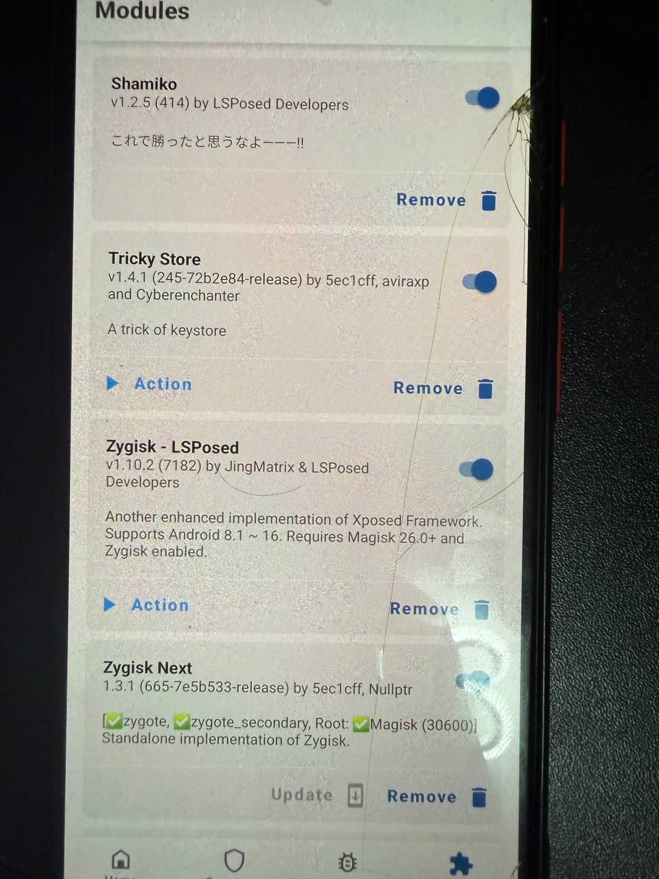 У кого-то получается пройти проверку "Strong integrity"? Буду признателен за наводку как пройти. Я использую Play Integrity Fix, playcurl, shamiko.