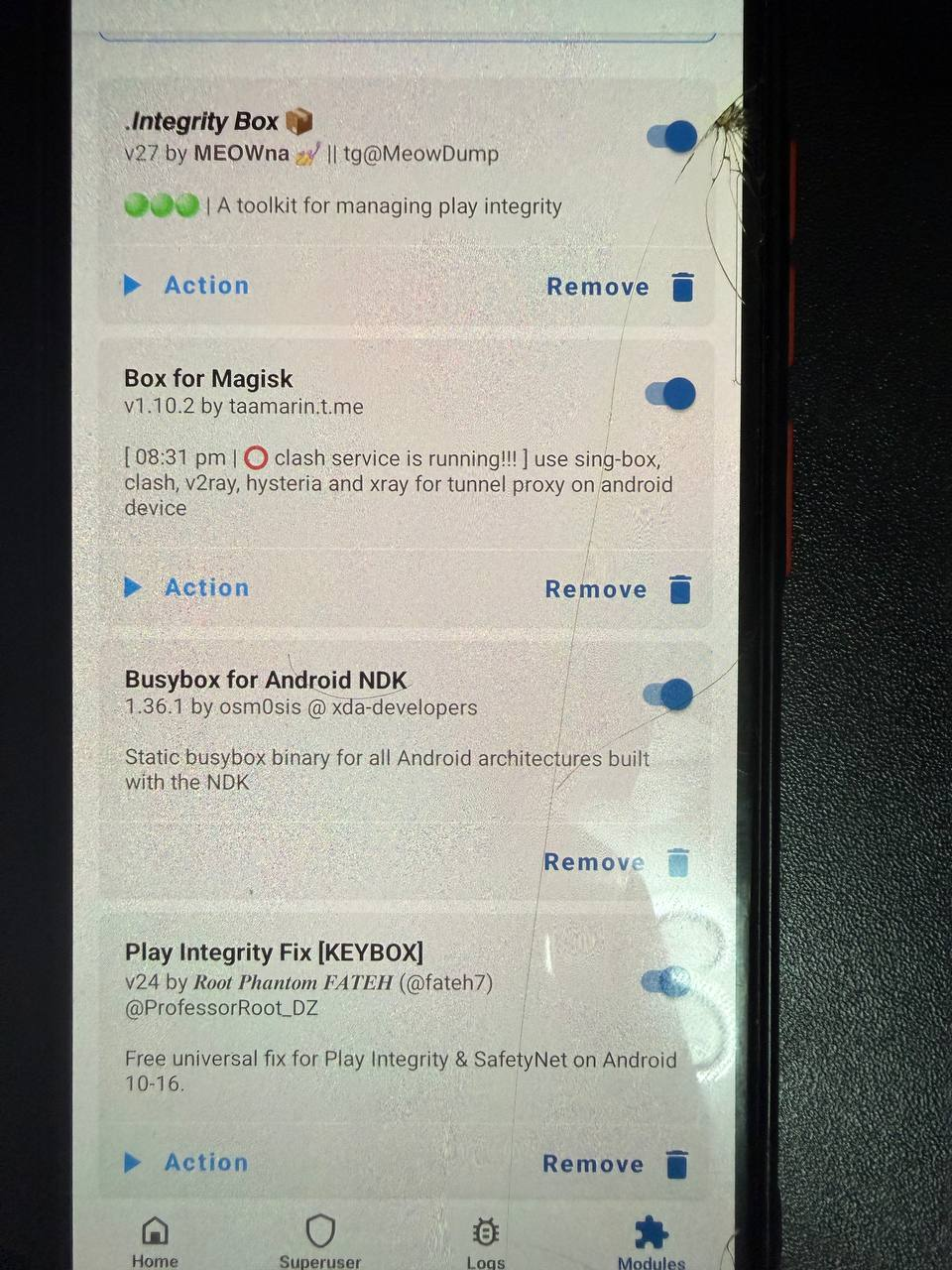 Не используйте модуль от fateh, он тот еще приколист, который крадет чужие наработки, выдает за свои. В его модуль зашит кейбокс. Поставьте актуальный кейбокс, поставьте Play Integrity Fork и будет всё ок.