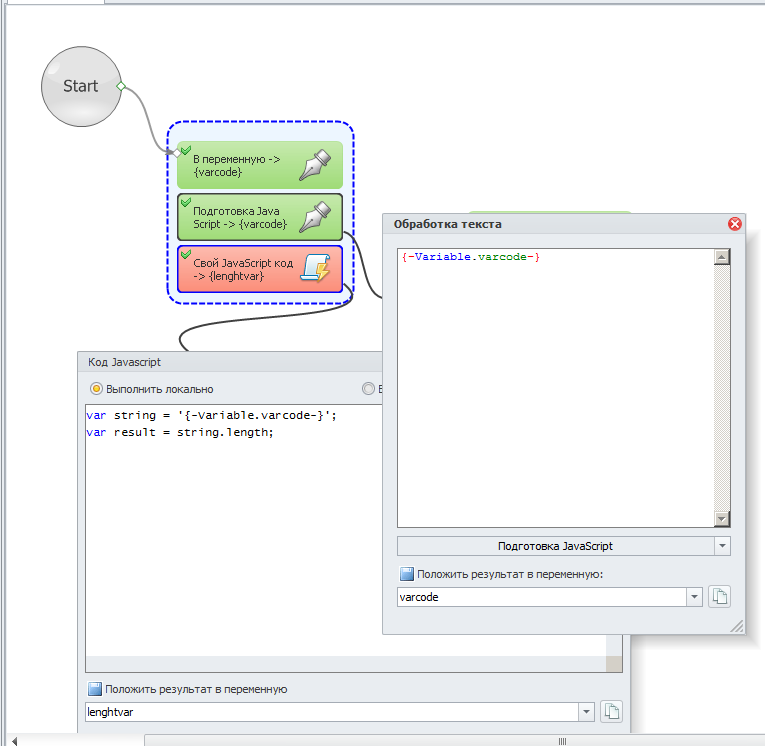 Перед подсчетом можно обработать переменную через "Обработка текста - Подготовка JavaScript".
