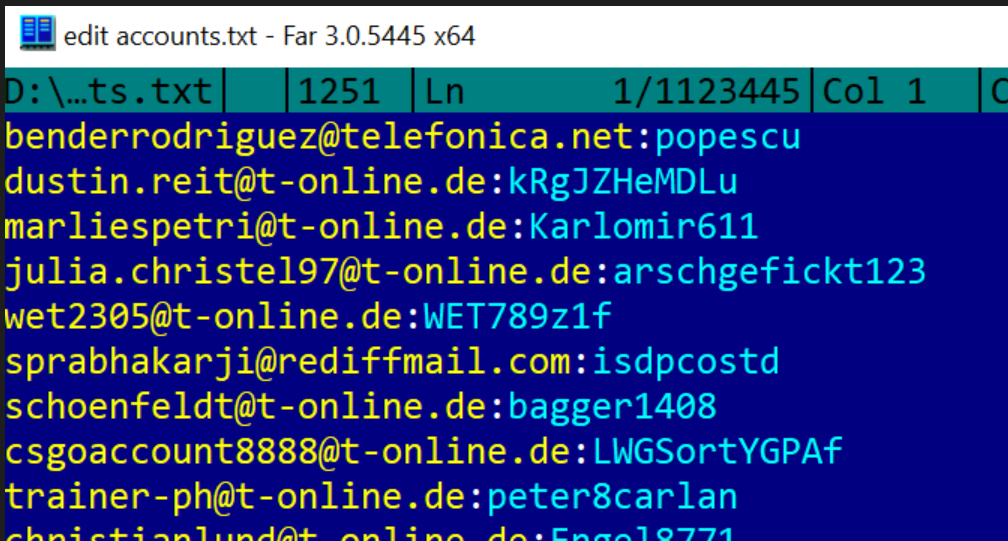 Допустим у нас есть файл с аккаунтами mail:pass c количеством строк около миллиона.