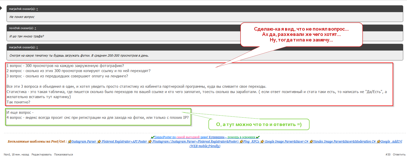 Что-то вас не в ту степь понесло. Интересовался не с целью дрочить на обещанный ТСом результат, а вообще - узнать, почему автор так настойчиво уходит от ответа про активную ссылку - когда у него 5 раз спросили про вид ссылки, а он под видом непонимания съезжал.Еперный театр, и везде же такие люди, вот покажи им стату с мильонами, тогда только возьму и затестирую, а тупо взять шаблон, причем готовый и затестировать это такая проблема, хотя там делов на час от силы.