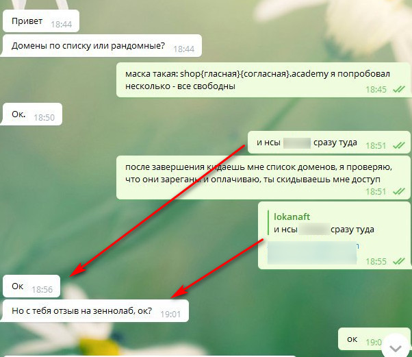 3. Заказчик проверяет домены на «зареган или нет» и ОПЛАЧИТВАЕТ.