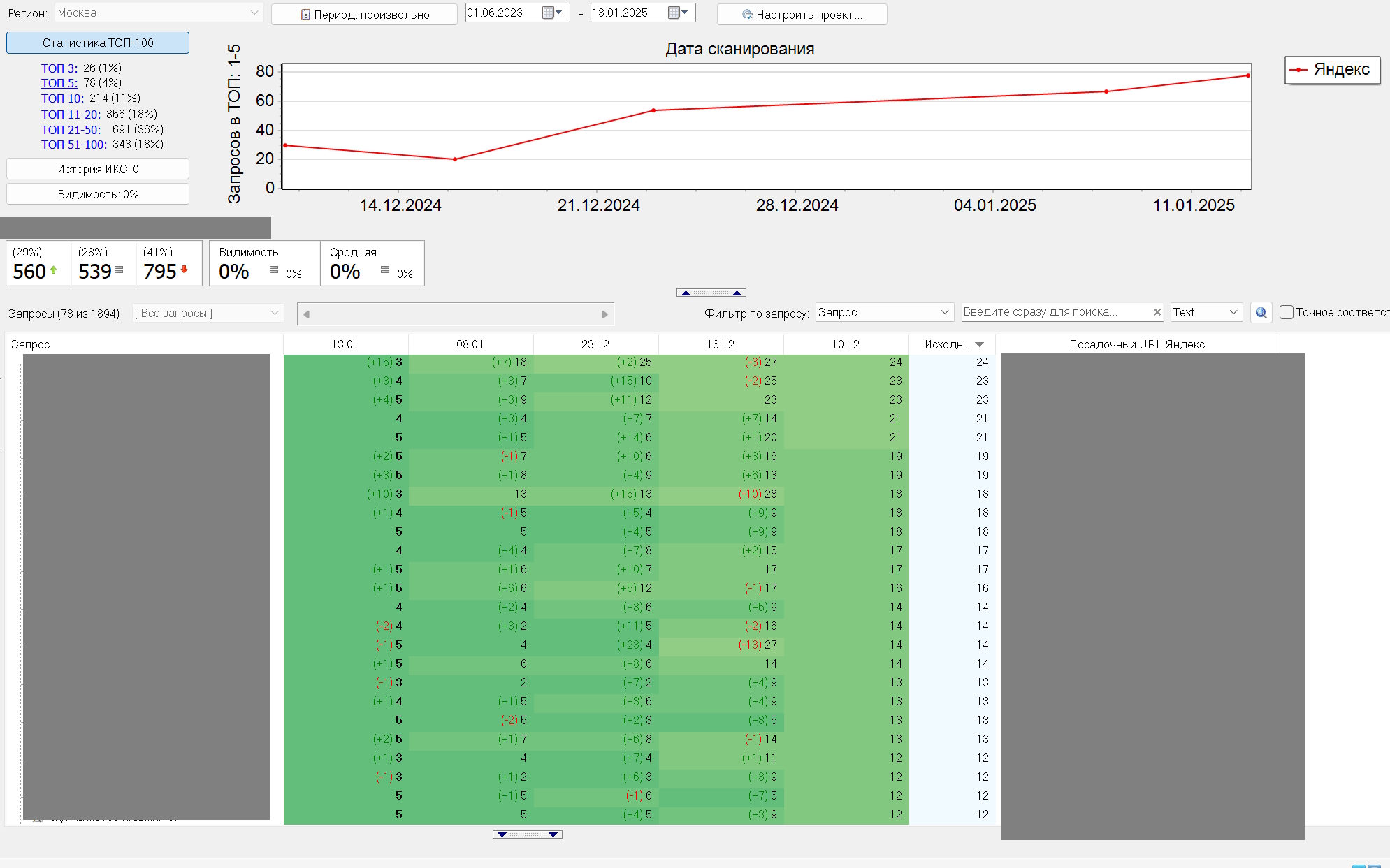 Пример проекта, в который я не верил (зная его конкурентность и нюансы), но заказчик настоял - результаты оправдали вложенные ресурсы. Продолжаем работать. Продвижение услуг Москва ТОП 3 Яндекс.
