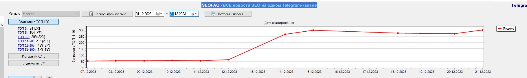 Самый лютый кейс. С сайтом работаем давно 1200 запросов в работе, регулярно стабильный рост и трафика и продаж. Заказчик доволен. И бац + 1000 запрсов в ТОП 1. Посмотрим за трафиком и изменениями - отпишусь обязательно.