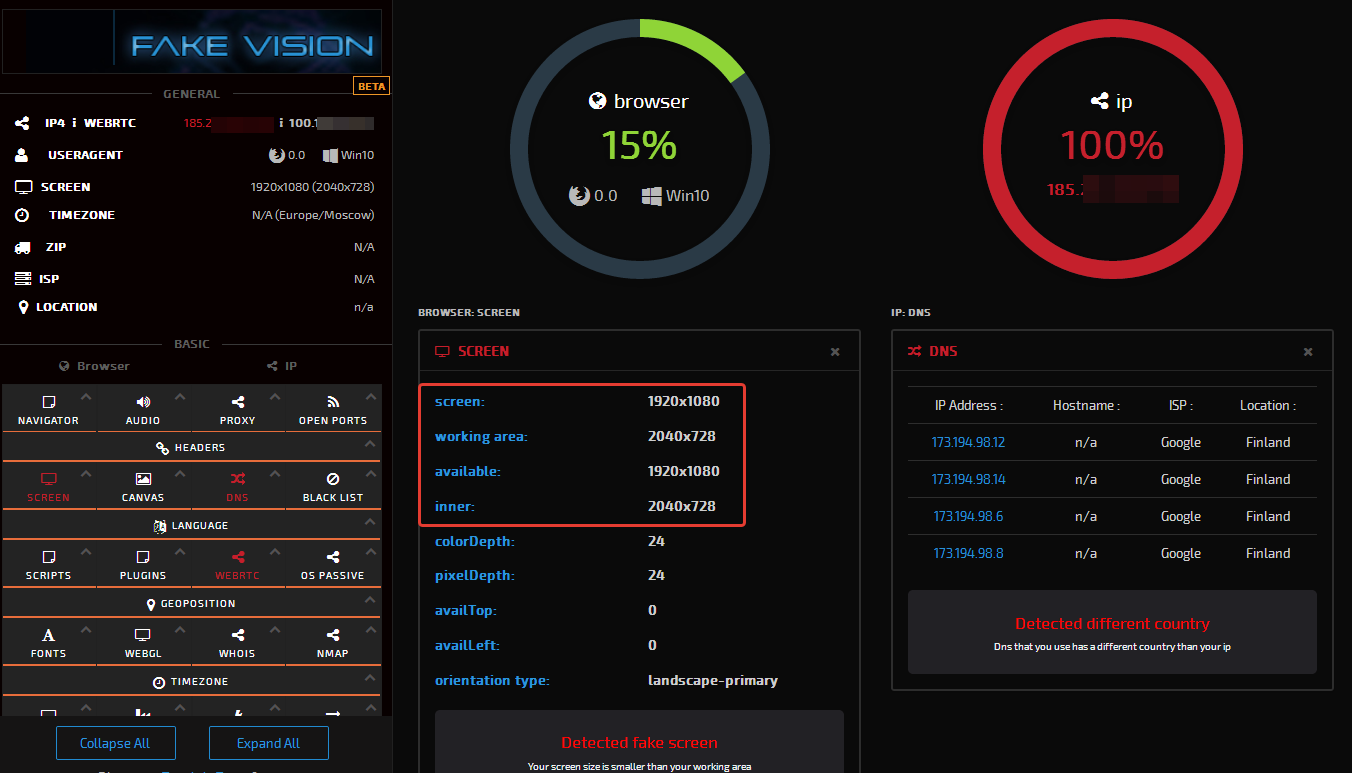 2. В WebRTC обнаружился какой-то левый IP, который не является ни IP прокси, ни локальным IP, сгенерированным Zenno.