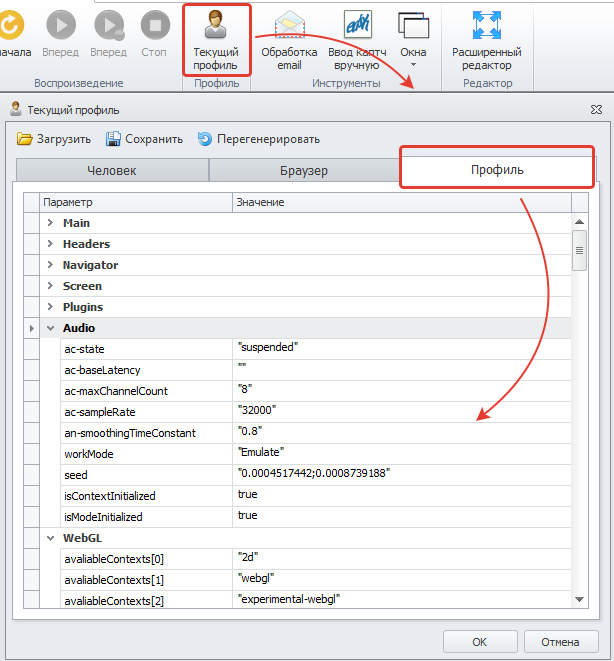 Профиль представляет собой виртальную личность-пользователя и параметры его браузера, работу которого эмулирует ZennoPoster.