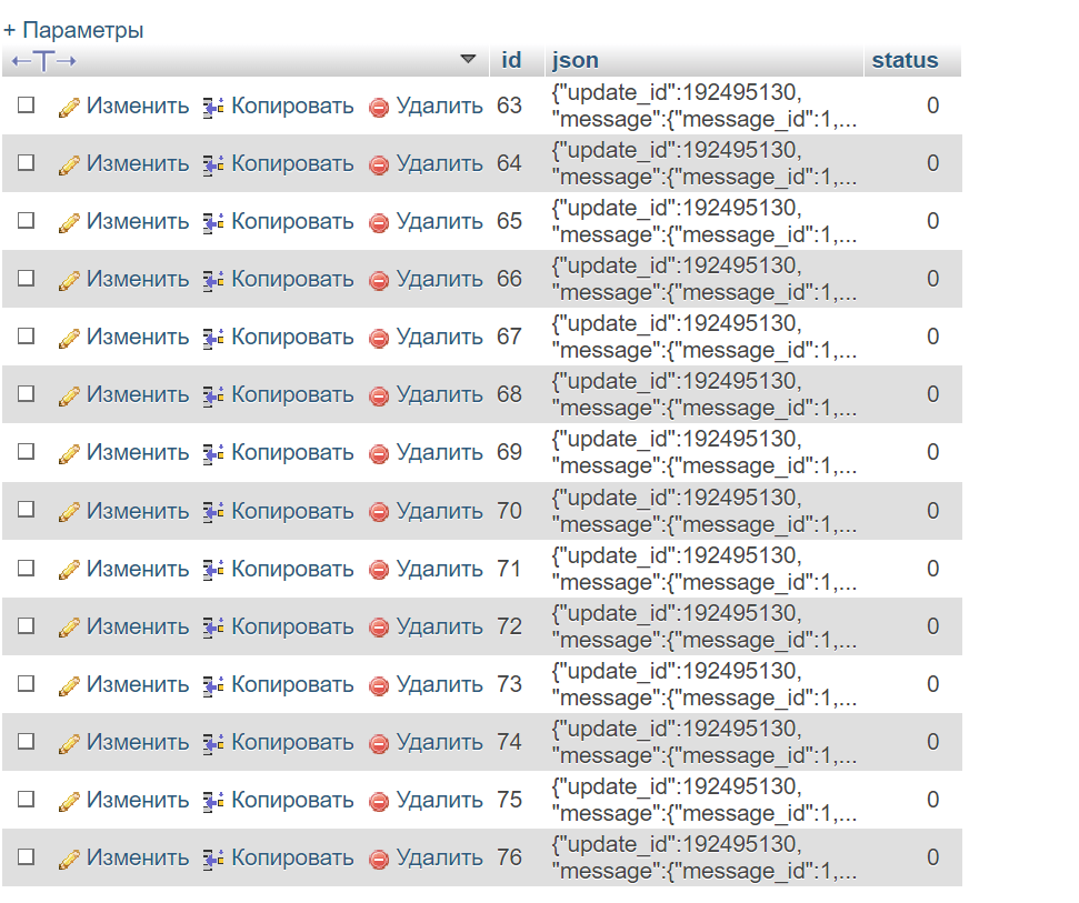 В бд записывается всегда одно и тоже значение (первое). просто дублирует и не реагирует на новые сообщения.