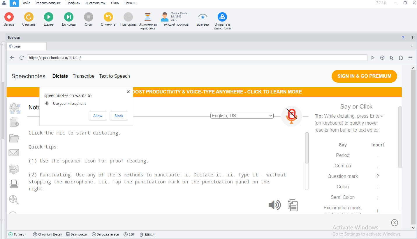 Не могу разобраться, почему не работает Речь в Текст через сайт https://speechnotes.co/dictate/