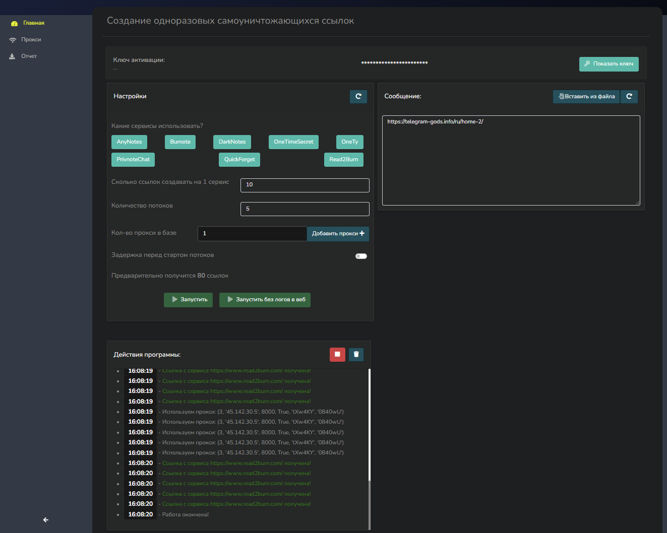 Наш продукт отличается простотой и надежностью. В отличие от сервисов редиректов, Nexus Note не требует сложных настроек или покупки дополнительных доменов. Вы просто загружаете прокси и текст, а программа делает всю остальную работу за вас, предоставляя вам полностью готовые для использования ссылки.