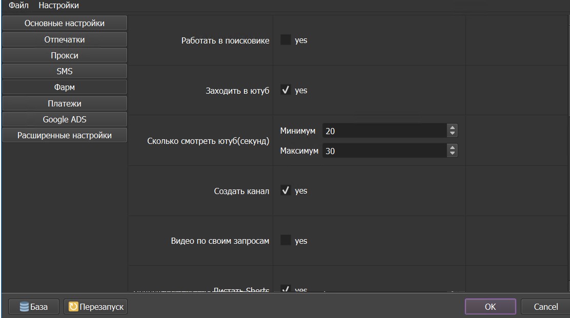 Поддержка всех видов прокси, встроенные отпечатки (User Agent), а также широкий выбор сервисов для отправки SMS. Фарминг аккаунтов: работа в поисковиках, веб-серфинг, авторизация на разных сайтах с использованием аккаунта Google, использование сервисов Google, фарминг YouTube (создание каналов, просмотр видео по запросам/шортс, лайки и подписки).