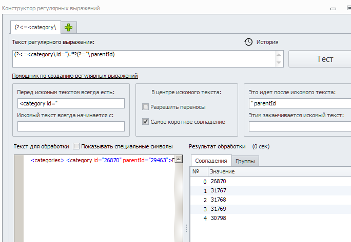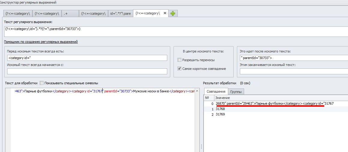 после искомого " parentId="30733"> и чек бокс самое короткое совпадение