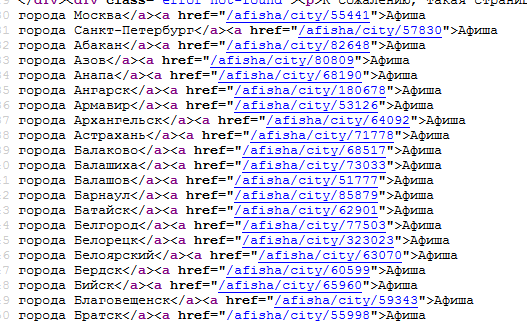 имеются ввиду ссылки на города?Это примерный список с готовыми ссылками.