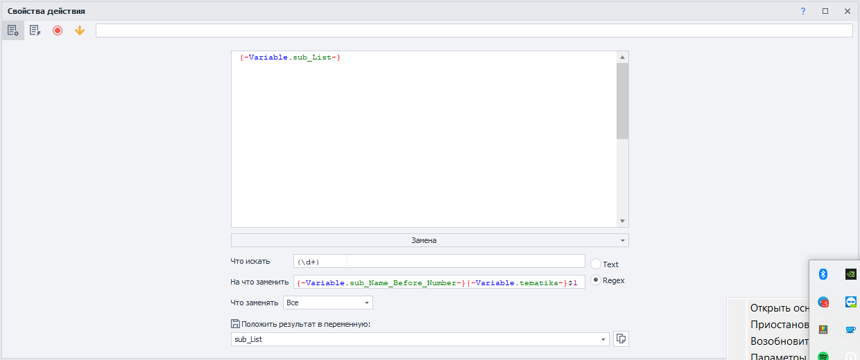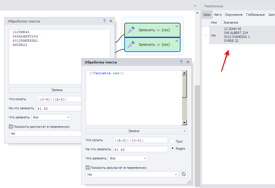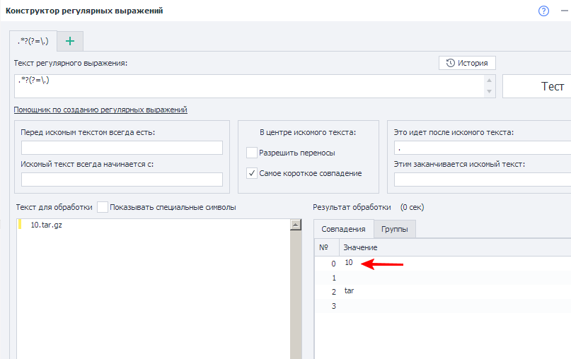 "Обработка текста - Regex" по регулярке .+ (взять первое (нулевое) совпадение).
