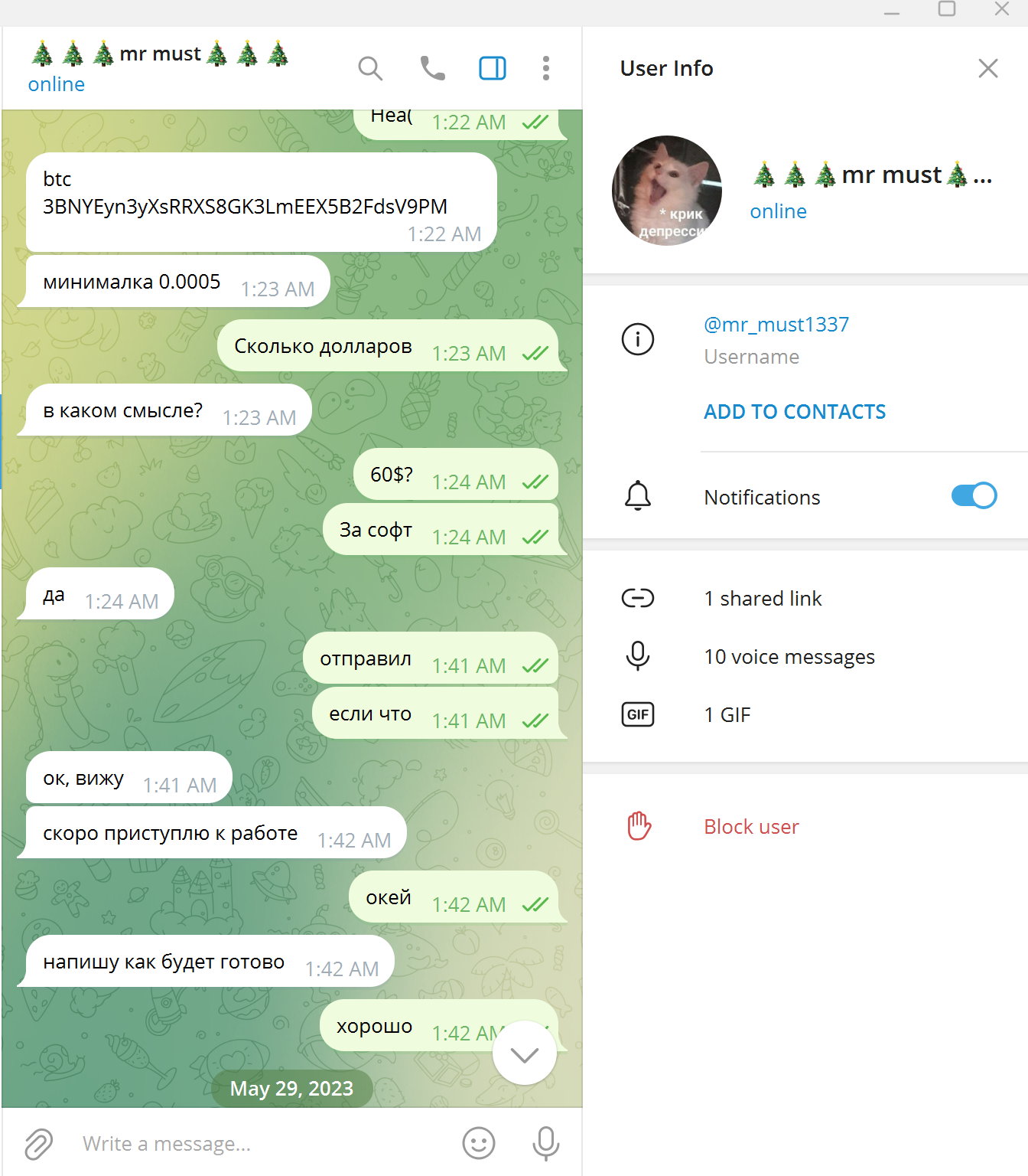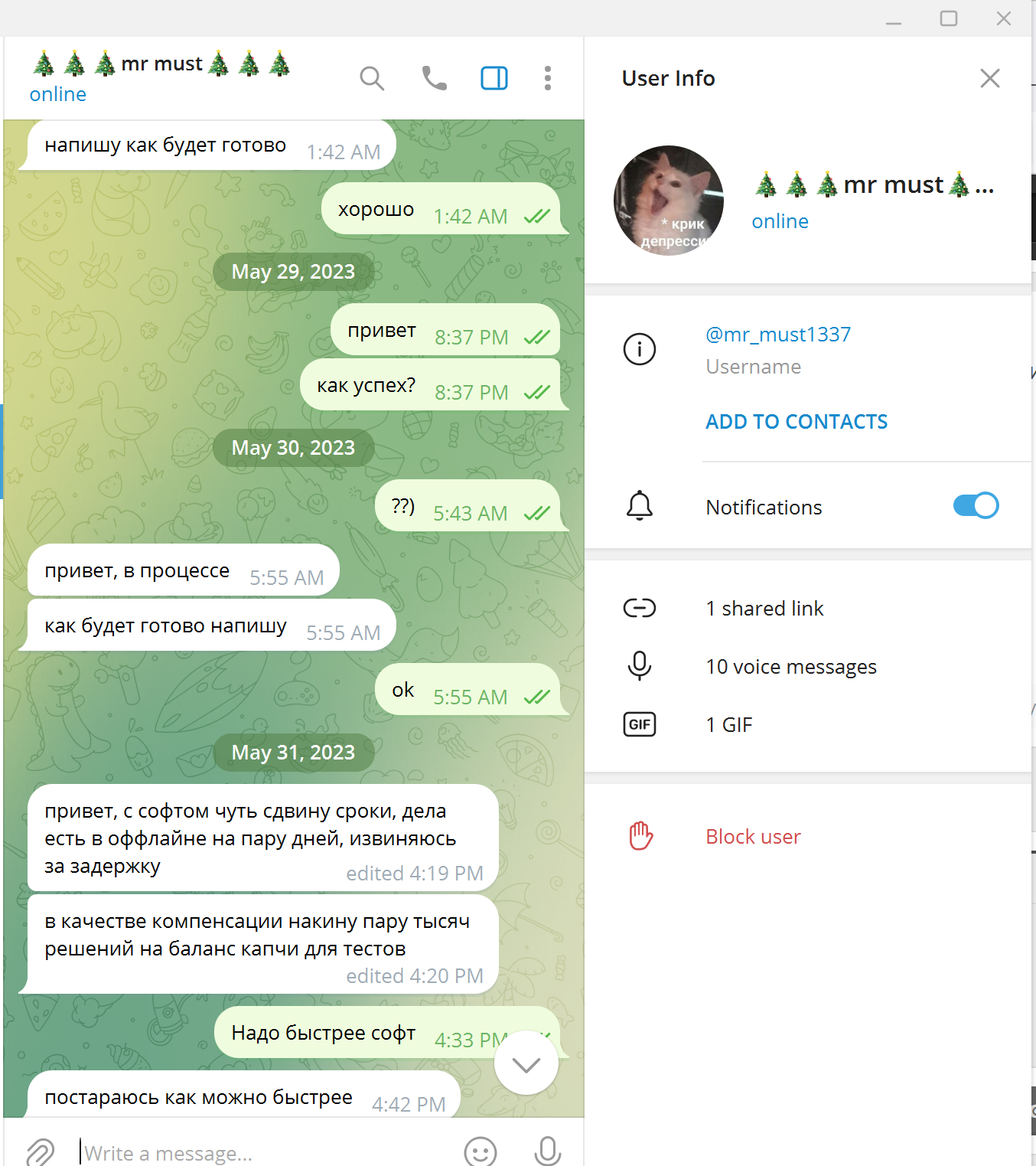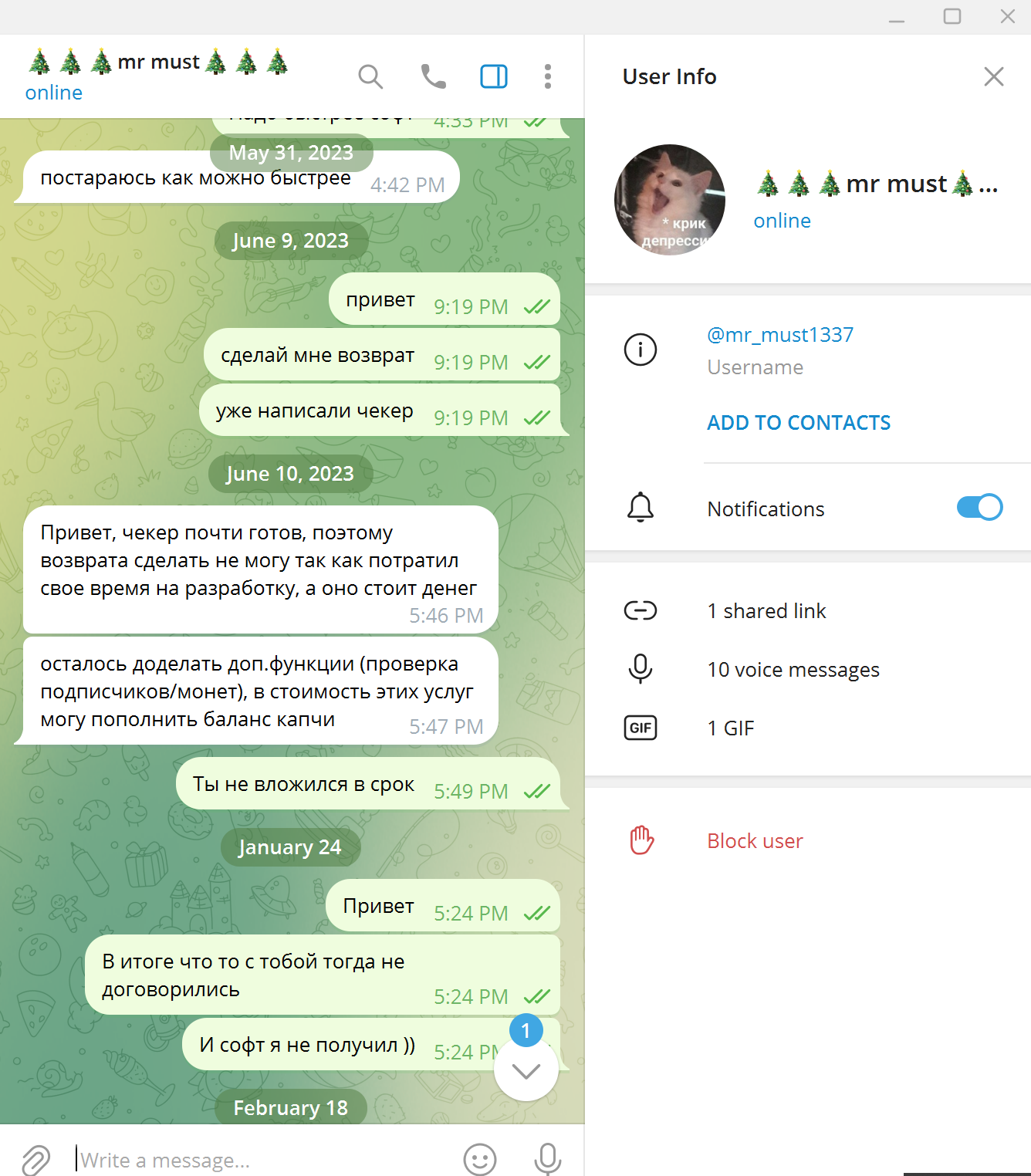 Заказал у него софт в мае 2023 года, он кормил меня завтраками, в итоге ничего не сделал.