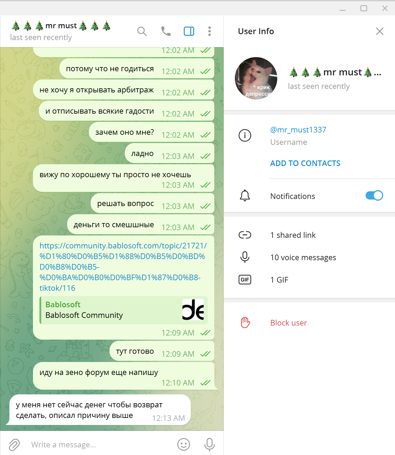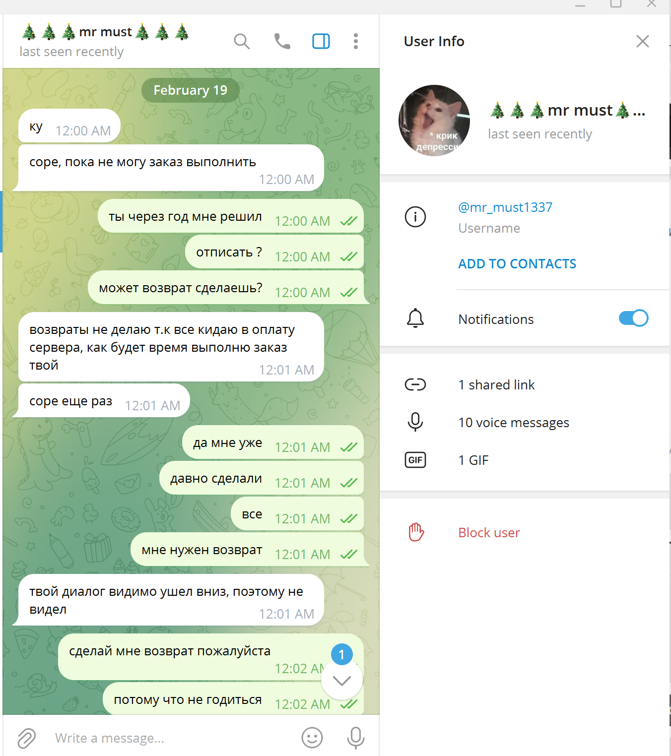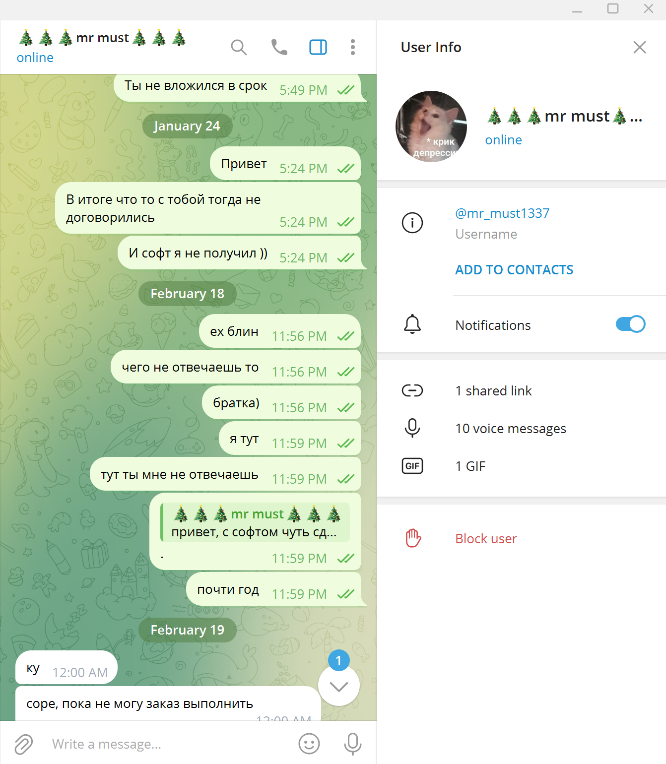 На мой контакт в тг не отвечает, пишу с другого - ответ мгновенный!!!