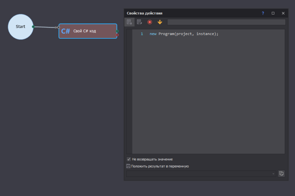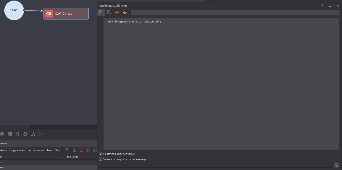 Выполнение действия CSharp OwnCode. Данный формат пути не поддерживается.