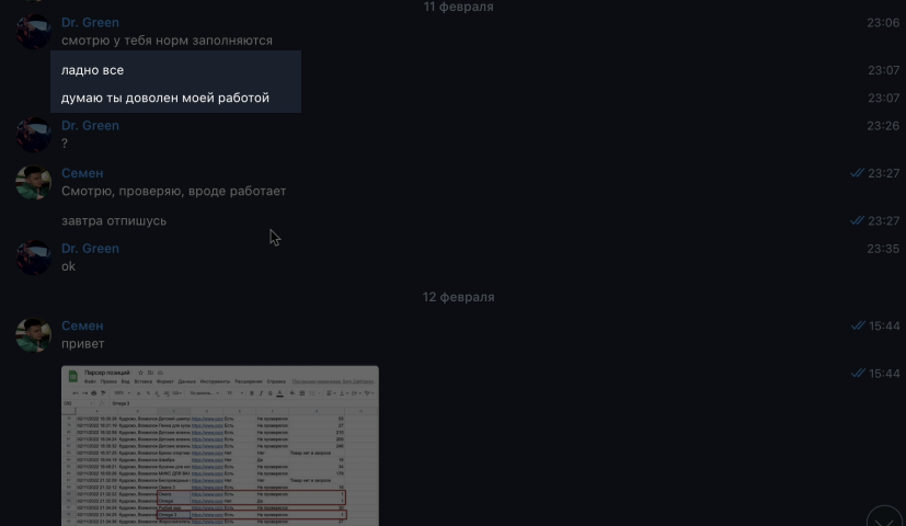 Степень адекватности ТС в одном предложении, он сразу подчистил переписку в Telegram чтобы не было пруфов, но я проскринил все вдоль и поперек. 7 Февраля я скинул тебе ТЗ на написание рабочего парсера позиций работающего в многопоточном режиме. Сегодня 17 февраля, ни одной рабочей версии я не увидел и ни разу не написал тебе "Всё гуд".