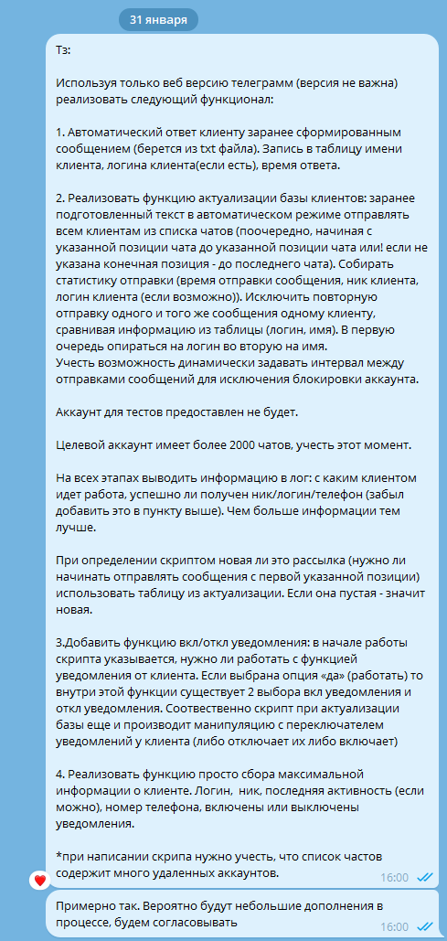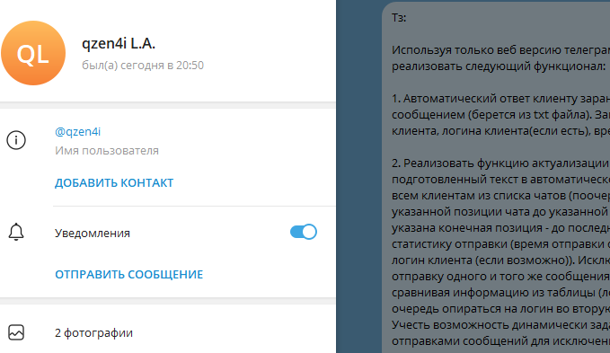 Кинул на деньги, взял предооплату и пропал, после удалил диалог в телеграм. Не когда не обращайтесь к нему, Развод на деньги!!!