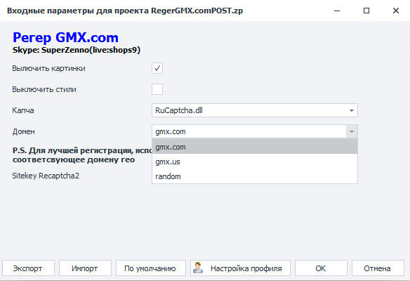 Регистратор почт GMX.com&GMX.us + открытый бонусный шаблон включения IMAP [На запросах+браузер].