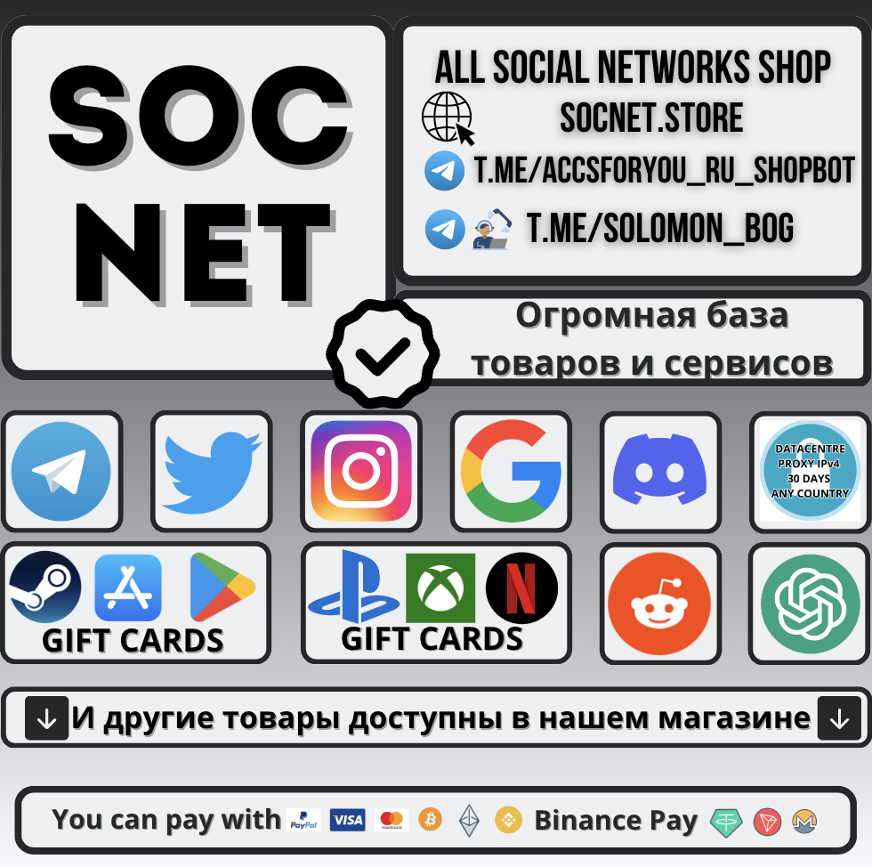 ➡ Telegram Shop Bot: socnet.shop ✅