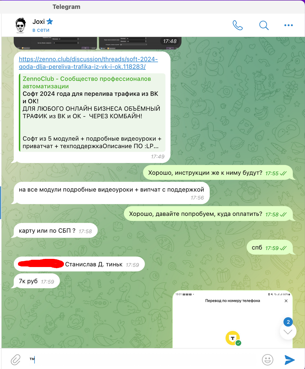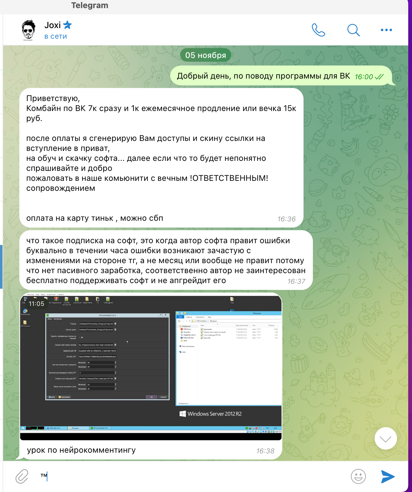 Купил софт у ТС. Взял вечку ТГ комбайн и софт по работе с ВК. Проги, модули на месте. Обучение есть, поддержка есть. НЕ МОШЕННИК. Пока всем доволен.